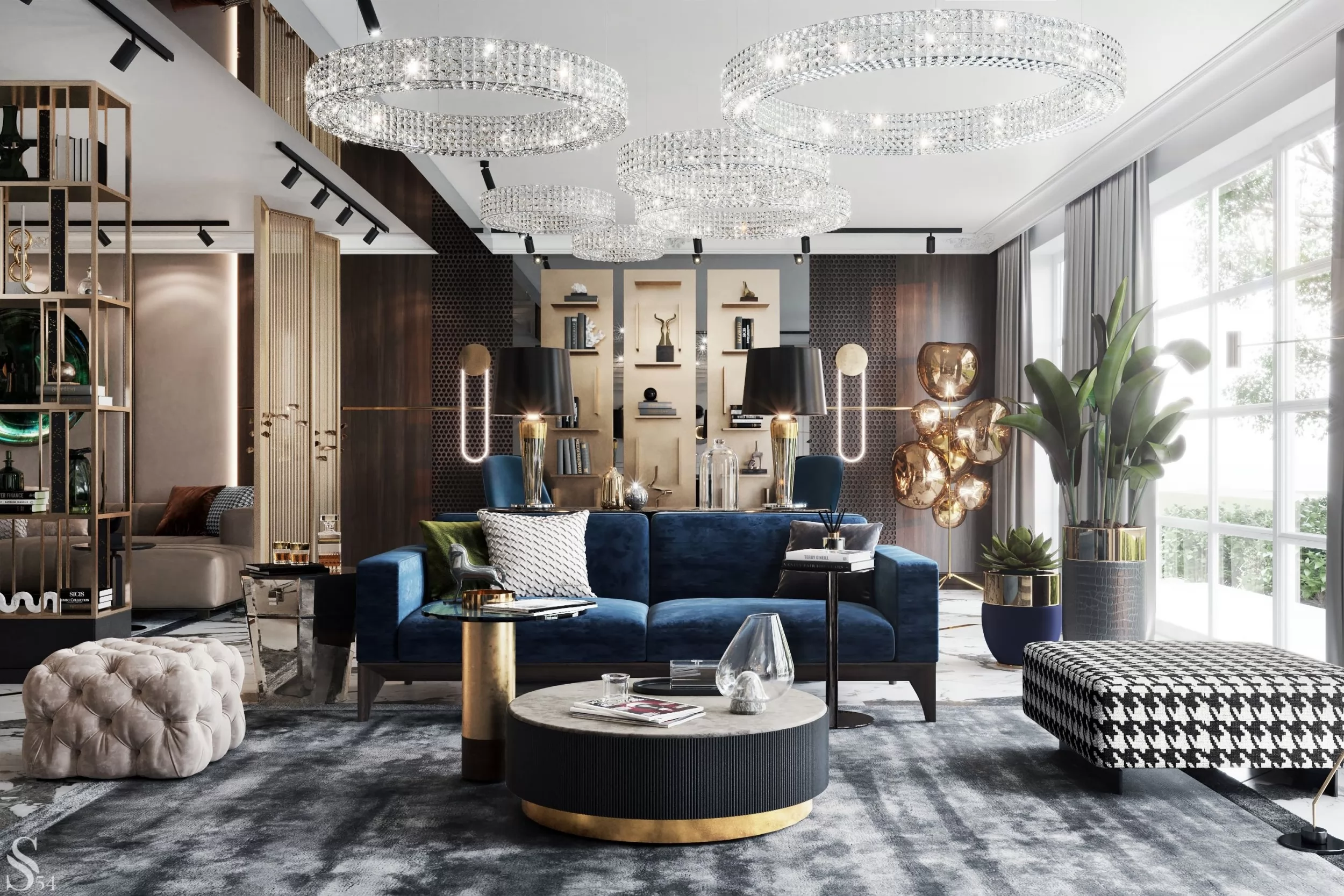 Konsep ini berfokus pada kesan mewah. Pengaplikasian dari konsep ini dapat terapkan pada detail-detail dari furniture dan aksesoris, peraturan utama dari penggunaan konsep ini adalah pengaplikasian yang tidak berlebih, hal ini bertujuan agar antara unsur emas dengan unsur lainnya dapat seimbang dan harmonis, apabila berlebih ruangan akan terkesan monoton, dan dapat membuat pengguna didalamnya merasa pusing karena efek pantulan cahaya yang berlebih. Konsep ini sangat cocok untuk dikombinasikan dengan material yang memiliki finishing doff, dan furniture ataupun aksesoris yang memiliki pola bentuk yang sederhana, hal ini bertujuan agar ruangan tidak terkesan sempit.