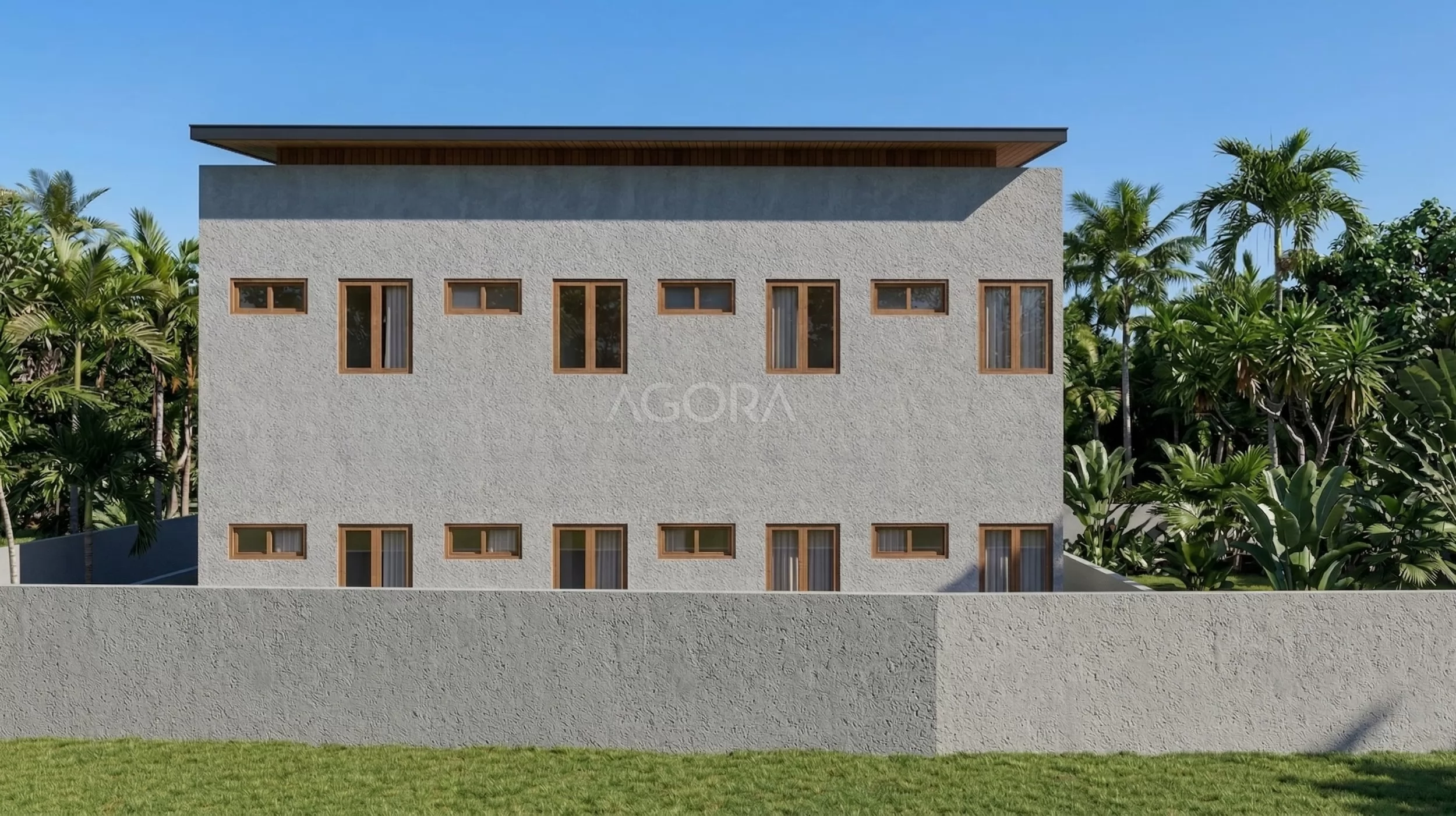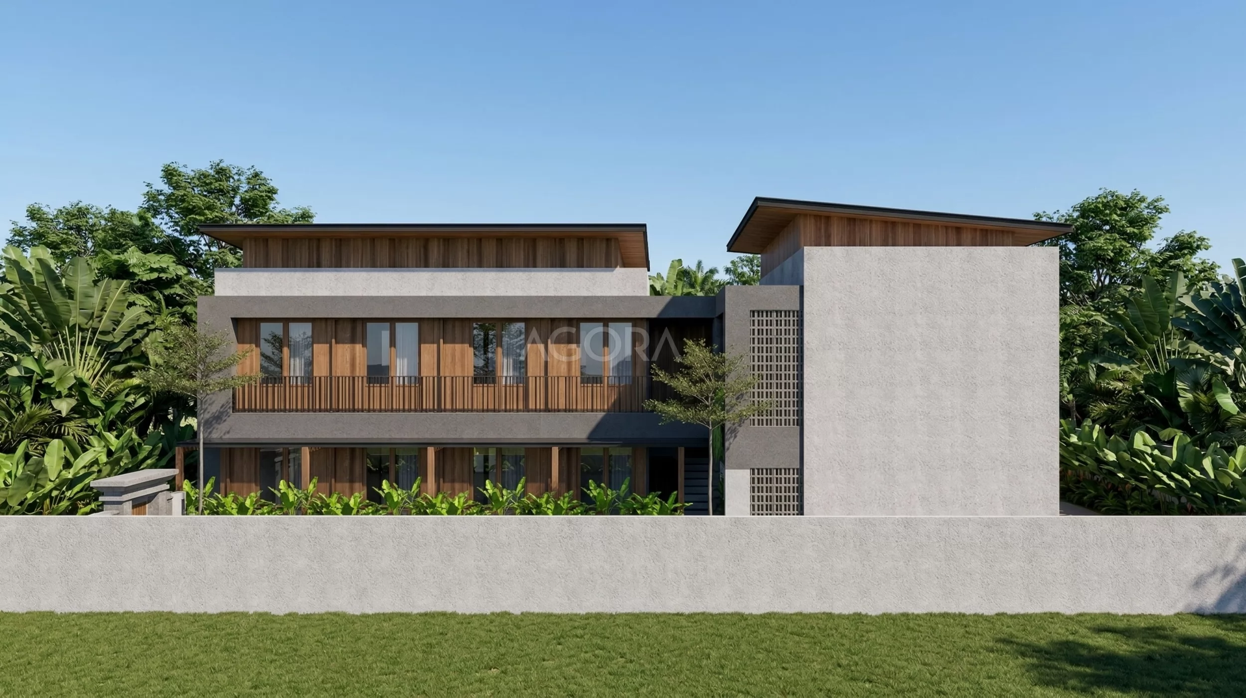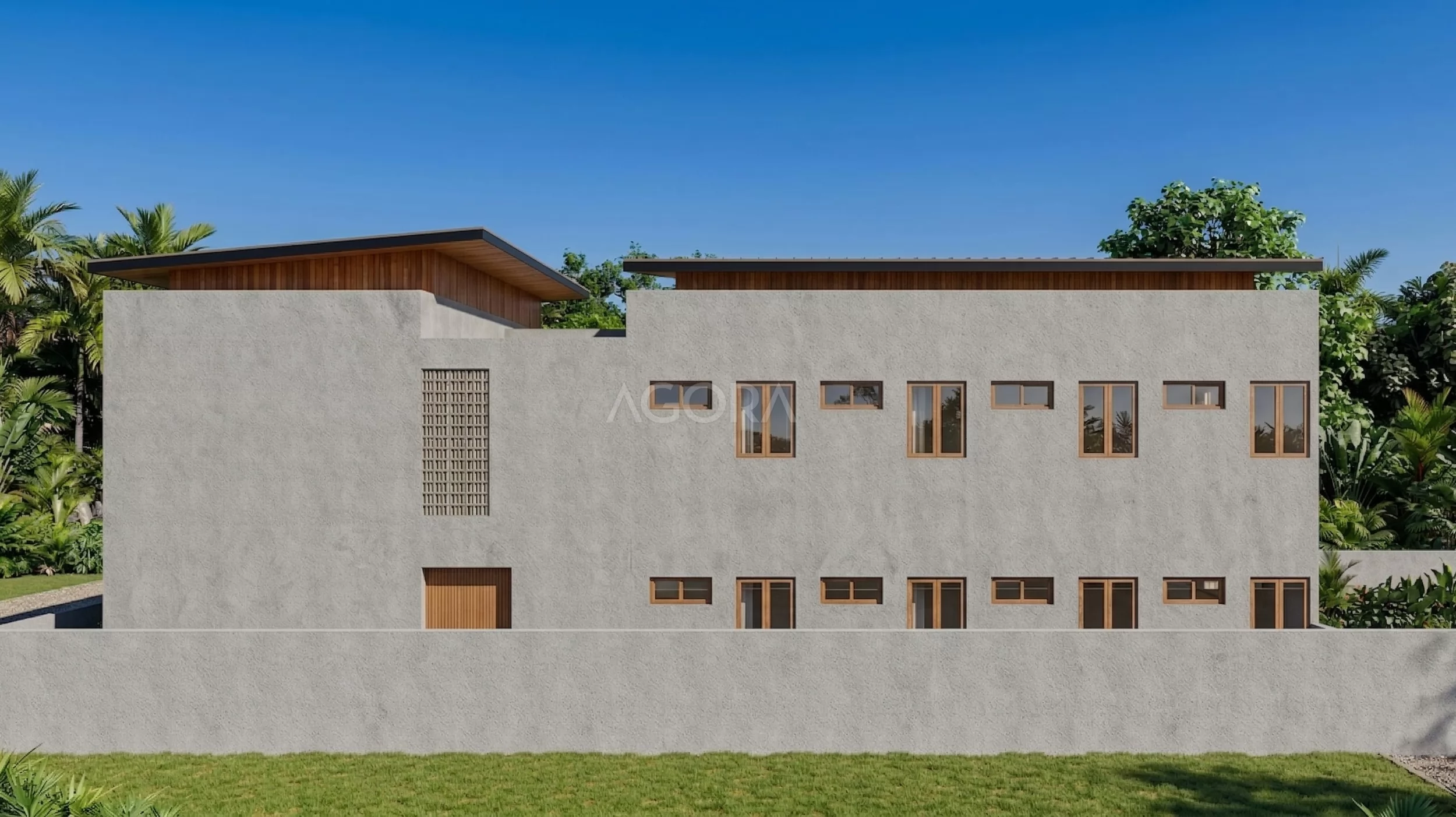 Guest House ini punya bentuk L yang memanjang, cocok banget buat lahan sudut karena bisa maksimalkan setiap sisi lahan. Konsepnya tropis modern, jadi kelihatan tegas secara desain tapi tetap nyaman dan adaptif sama iklim.