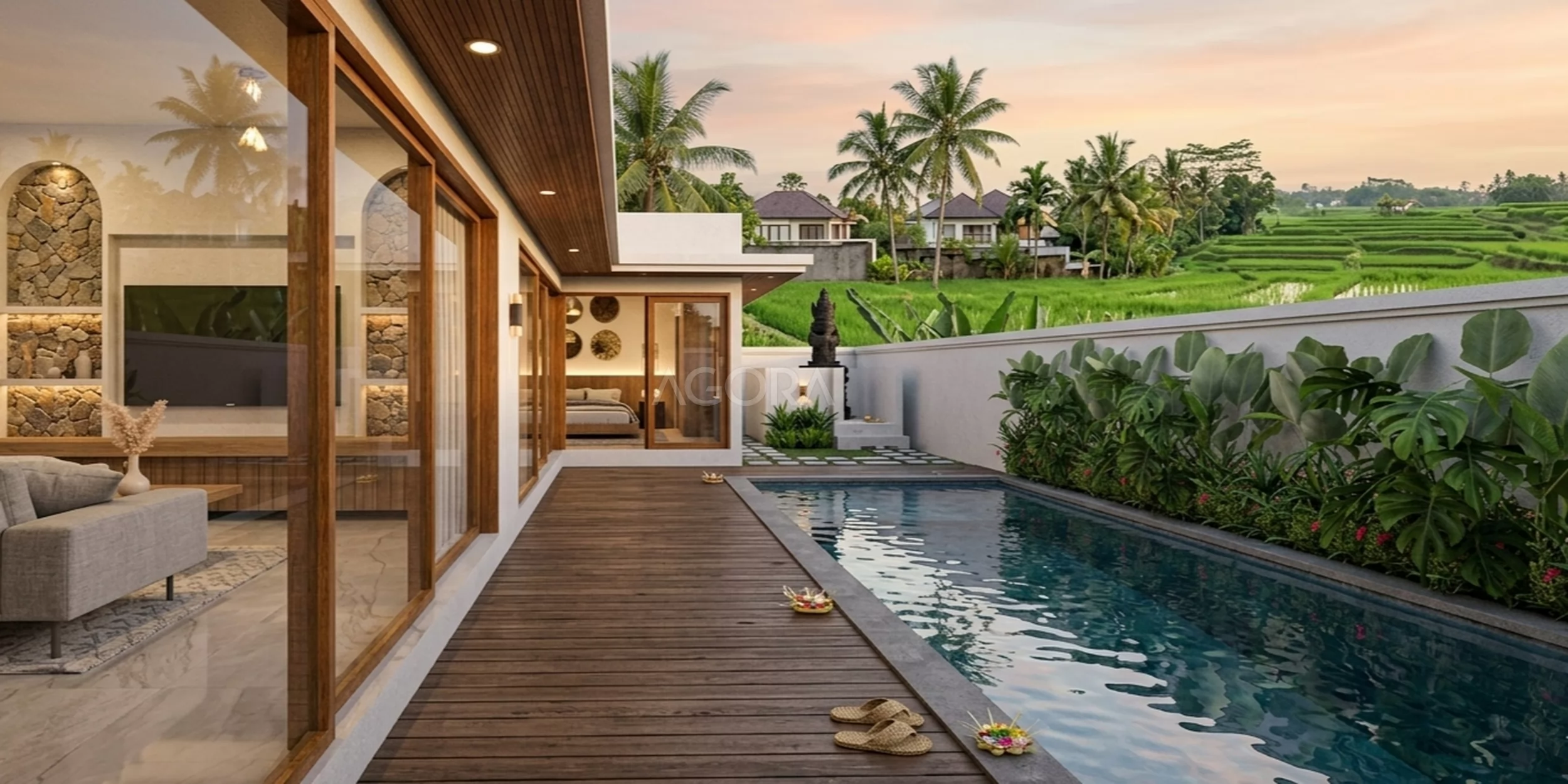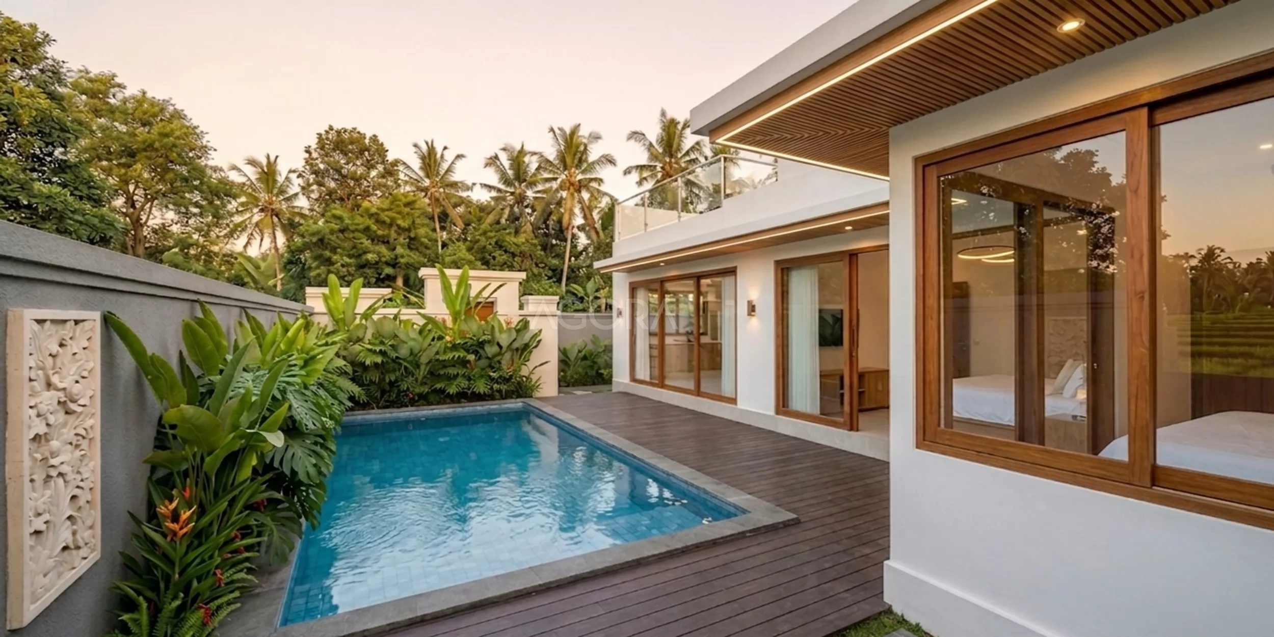 Secara keseluruhan, vila ini bukan sekadar tempat tinggal, melainkan sebuah ruang pelarian yang dirancang untuk menghadirkan ketenangan, kenyamanan, dan kedekatan dengan alam. Konsep modern minimalis yang diusung tidak hanya tampak dari segi bentuk, tetapi juga tercermin dalam cara ruang dimanfaatkan secara efisien, estetis, dan penuh
