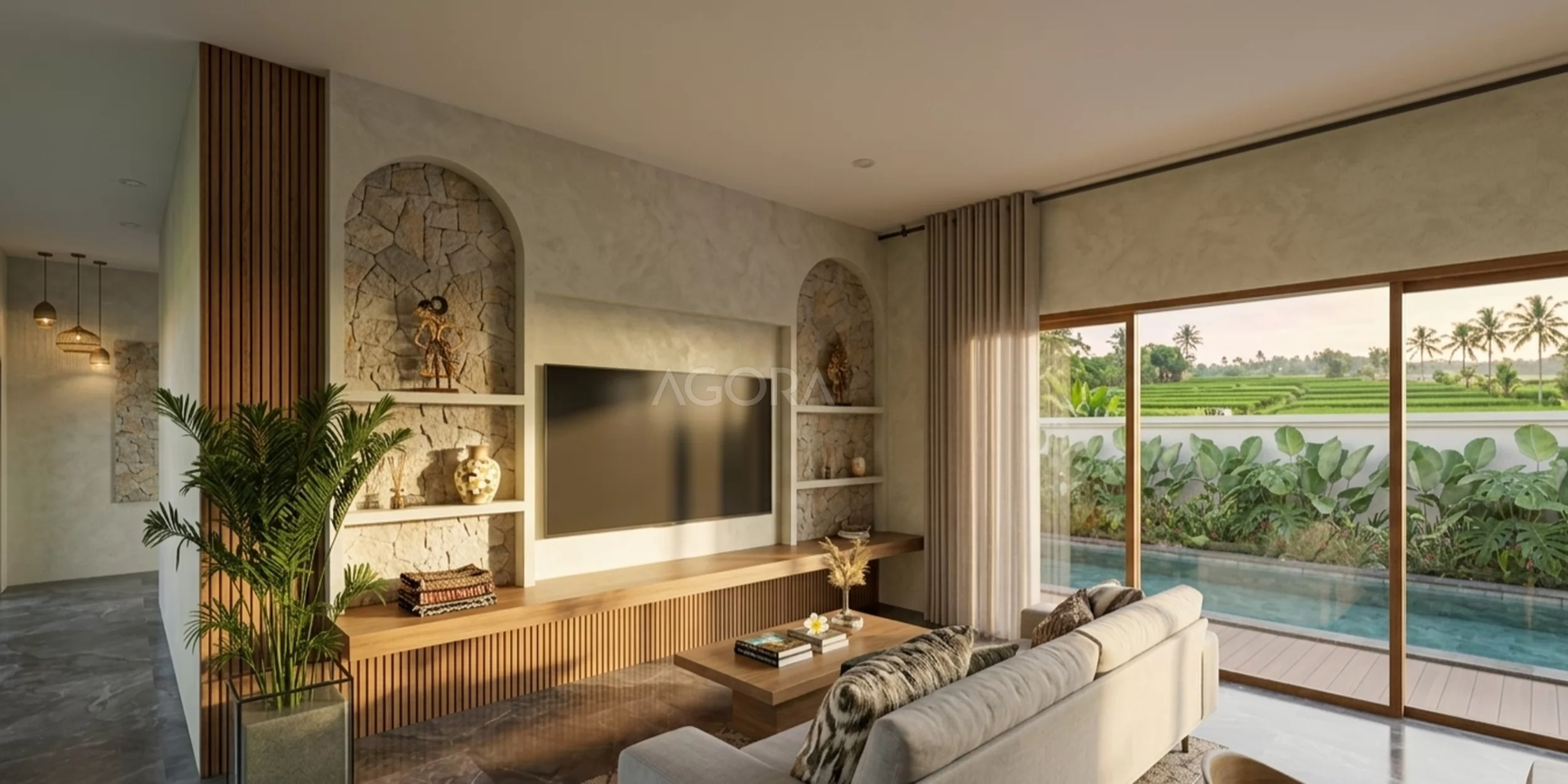 Terletak di lingkungan yang masih alami, vila ini dikelilingi oleh hamparan kebun hijau dan persawahan yang asri, menghadirkan suasana yang jauh dari hiruk pikuk perkotaan. Udara segar, suara alam, serta panorama hijau menjadi bagian tak terpisahkan dari pengalaman tinggal di sini. Meskipun akses menuju lokasi berada cukup jauh dari jalan utama, jalur yang tersedia sudah dapat dilalui kendaraan roda dua, memberikan nuansa eksklusif sekaligus privasi yang lebih terjaga bagi penghuni.