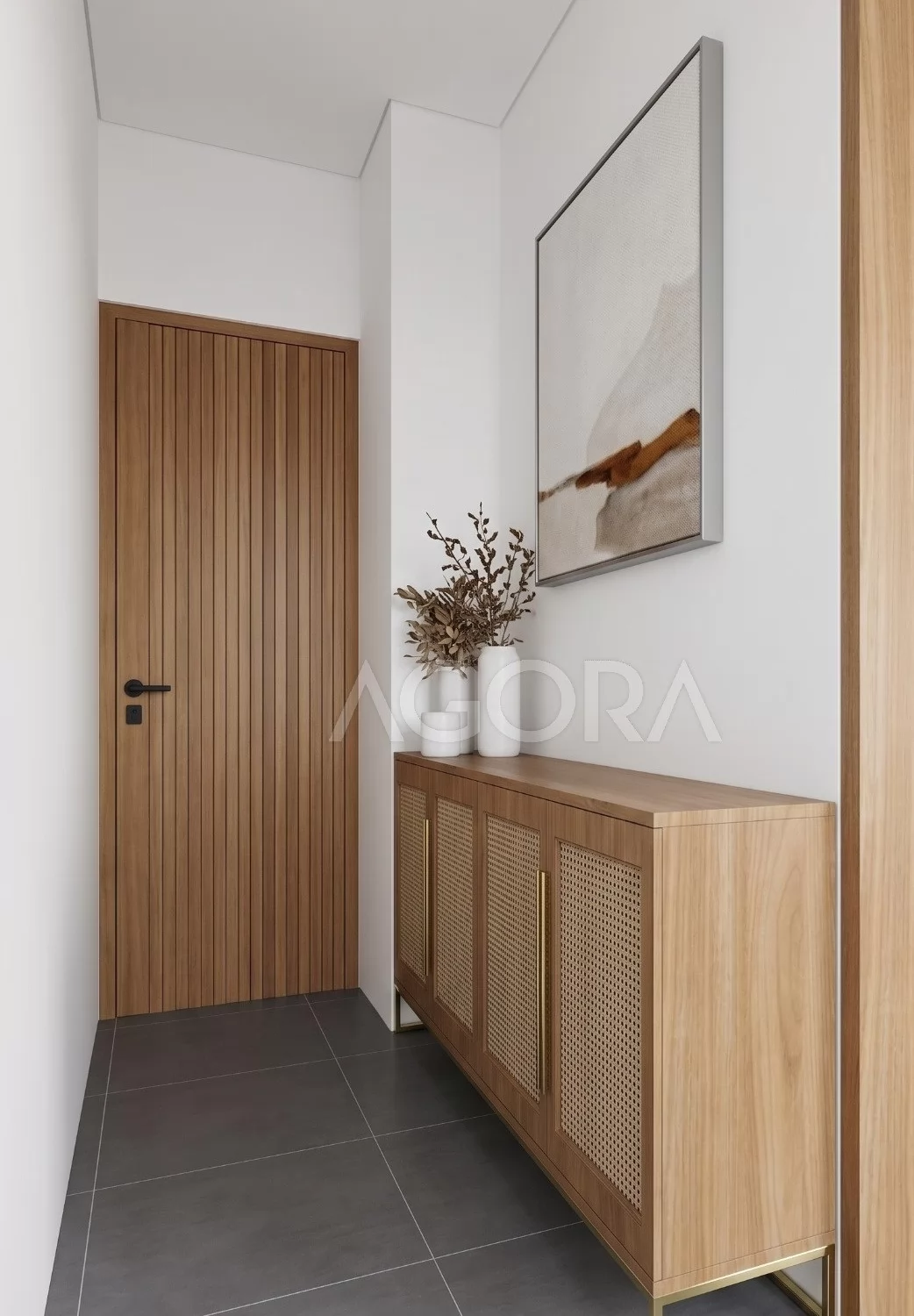 Area entrance dirancang bukan sekadar akses masuk, tapi sebagai ruang transisi yang memberi pengalaman sebelum masuk ke dalam rumah. Dinding tinggi, elemen lengkung, dan taman kecil membuat area ini terasa privat, tenang, dan welcoming.